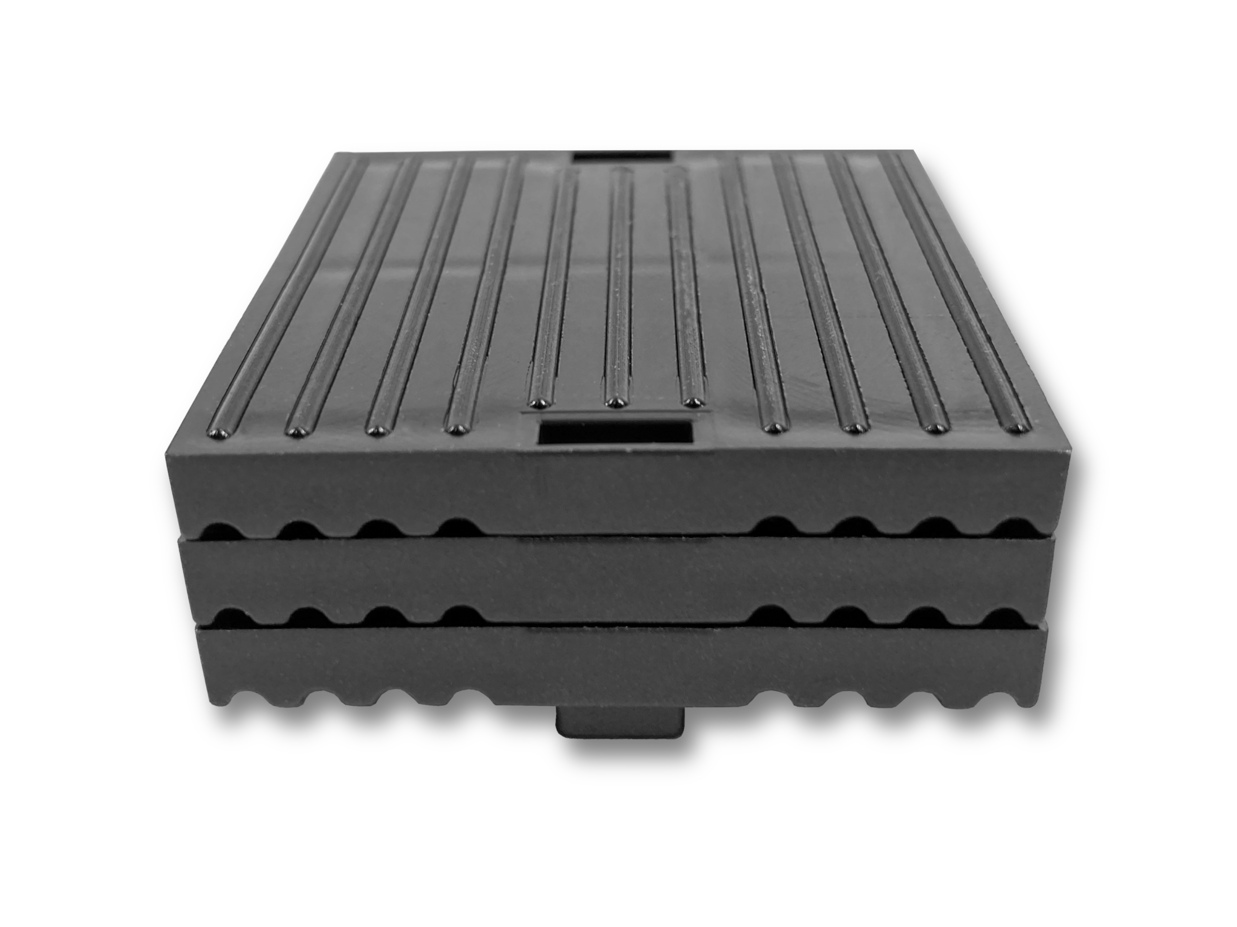 Größe: 50 mm x 52 mm x 6 mm Höhe aufgesteckt bzw. 9 mm Höhe (3 mm Höhe der seitlichen Stecker)