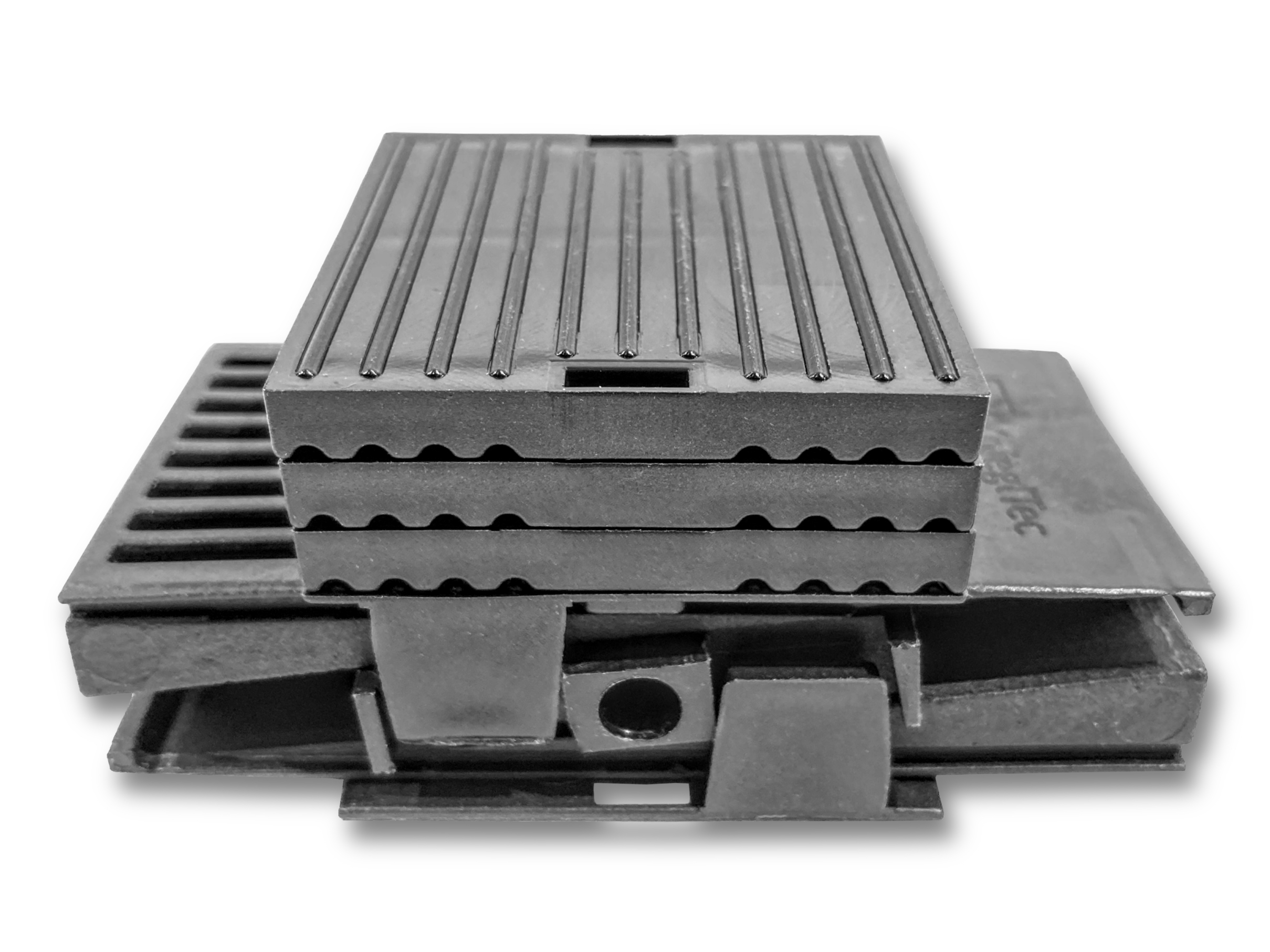 So einfach geht’s: Einfach Gleitplatte(n) auf den VarioFlex 50 Keil klipsen. Danach können Sie beliebig viele Adapterplatten auf die Gleitplatte(n) aufstecken.